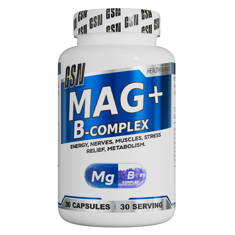 GSN Mag + B Complex 30 Capsules est un complément combinant magnésium et vitamines B pour réduire la fatigue, soutenir la fonction musculaire et nerveuse et améliorer la récupération.