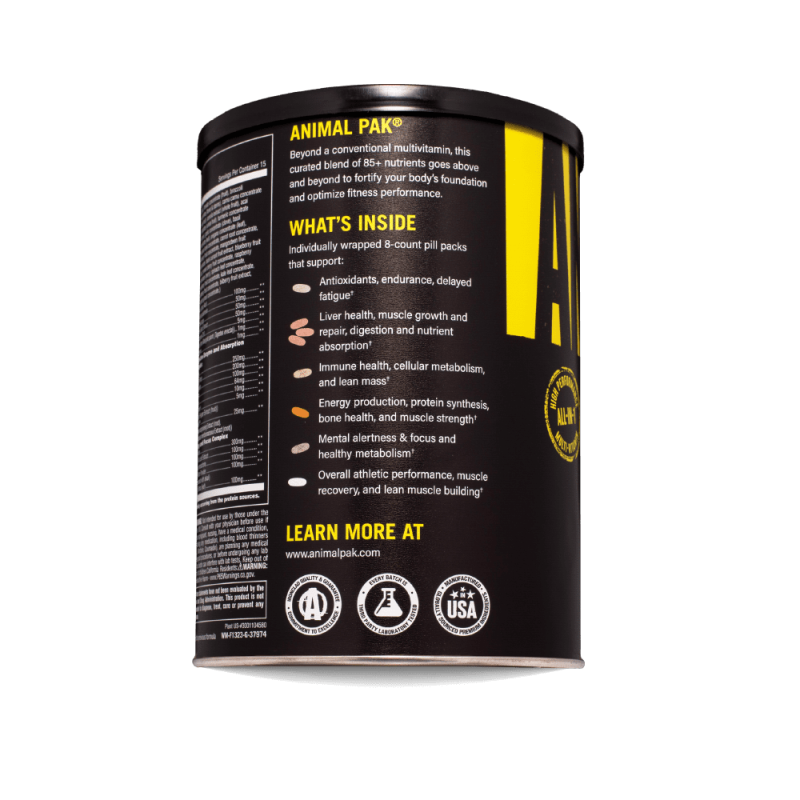 Le format 44 Packs est idéal pour une supplémentation prolongée. Animal Pak est reconnu mondialement comme l’un des multivitamines les plus complets pour sportifs, garantissant un soutien nutritionnel maximal pour la performance, la récupération et la santé générale.