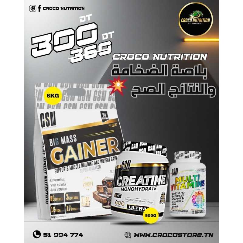 Pack GSN Big Mass – Gainer 6kg + Créatine 500g + Multivitamines