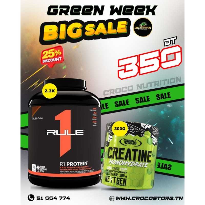 Pack Masse & Performance – Rule 1 Whey + Créatine 300g Real Pharm
